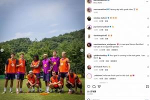 拉什福德在社媒配文写道:“氛围很棒的训练日!”