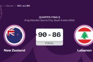 体育资讯08月15日讯 今日2025年男篮亚洲杯1/4决赛,新西兰男篮开局不利,在比赛中最多时落后22分,但他们最终完成了逆转,以90-86淘汰上届亚军黎巴嫩,杀进四强将对阵中国男篮。