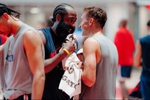 快船训练营第二天照片:哈登&博格丹喜笑颜开 小卡&保罗同框