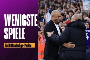 德甲执教生涯最快获得100分排名: